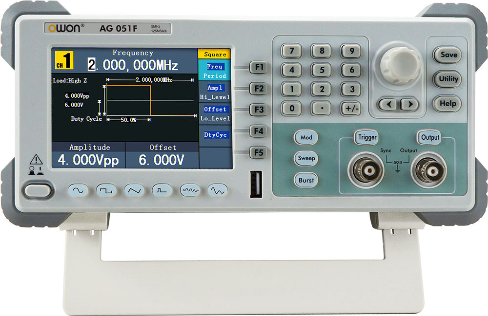 OWON AG051F представляет собой многофункциональный генератор, объединивший в одном приборе функциональный генератор и генератор сигналов произвольной формы.