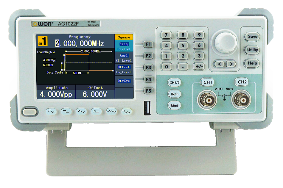 OWON AG1022F представляет собой многофункциональный генератор-частотомер, объединивший в одном приборе функциональный генератор и генератор сигналов произвольной формы.