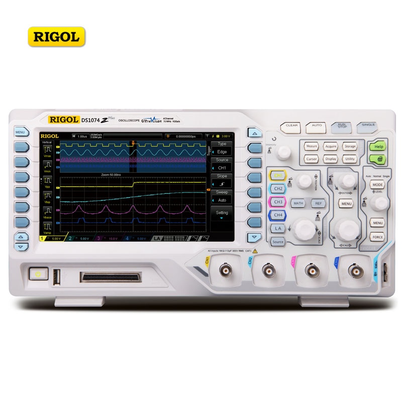 Традиционные достоинства осциллографов RIGOL, такие как, компактный дизайн, малые габариты, большое количество встроенных функций для измерения параметров сигналов, присутствуют и в модели DS1074Z-S PLUS.