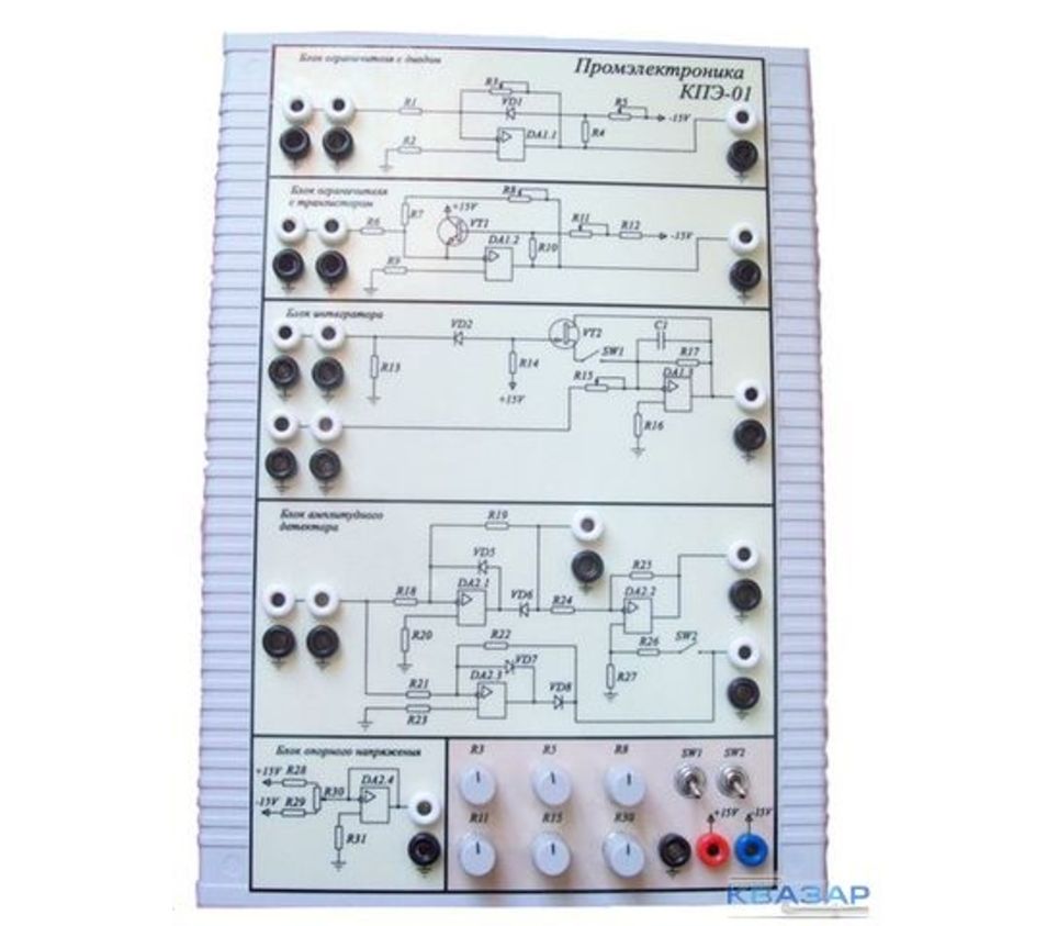 - стенд на выбор — КПЭ-01, КПЭ-02, КПЭ-03, "Усилительные каскады", "Операционные усилители", "Генератор" или "Выпрямители и стабилизаторы".
